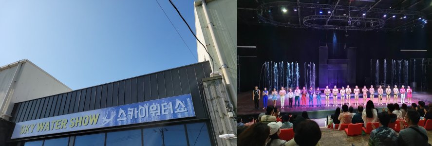 러시아와 필리핀 등의 곡예단과 기예단, 세계대회 우승 다이버 선수들이 펼치는 공중 퍼포먼스와 다이빙쇼를 볼 수 있습니다. 물과 빛이 아름답게 어우러지는 우리나라 최초의 스카이워터쇼입니다.
